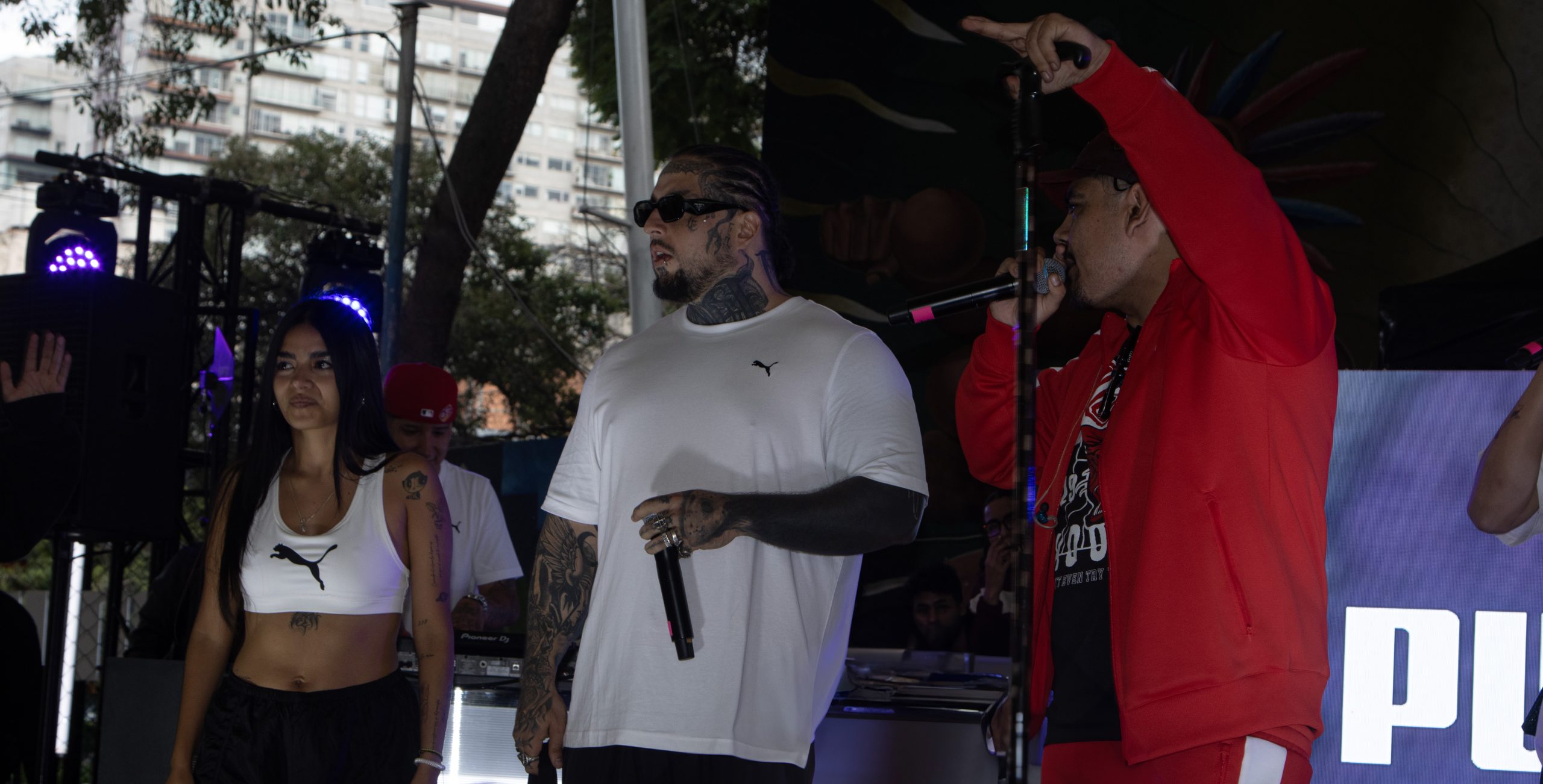 El escenario tomó fuerza con la presencia de figuras destacadas de la escena urbana como Kódigo, Sumeria, Lobo Estepario y DJ Trill, quienes acompañaron a Aczino durante la jornada. Todos ellos portaron SUEDE XL, consolidando la conexión del modelo con el estilo de vida urbano y con la estética del rap contemporáneo.